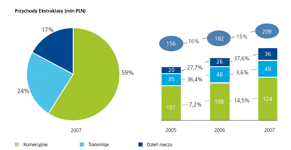 Nu är polska ligan till stor del en TV- och kommersiell produkt. Intäkterna från ”matchdagen” står för endast 17% av klubbarnas totala driftintäkter. (jmfr 30% allsvenskan)