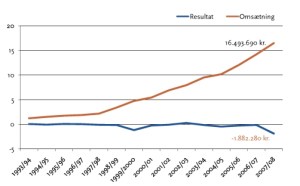 medelomsättning och medelresultat per klubb inom den danska ligahandbollen.saxat från: Idrættens Analyseinstitut