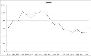 (klicka på bilden för högre upplösning)Figur 2: bilden visar ett index där man mäter Allsvenska nykomlingars poängandel av i ligan totala antal utdelade poäng.