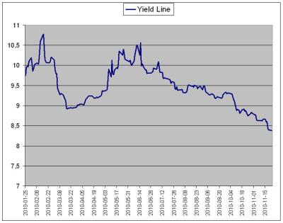 Ponera att du köpte obligationer i mitten av februari då de handlades för 90 pence per £. Det betyder att om du behåller dina obligationer till förfall och återinvesterar kupongerna (8.75%) i obligationen så får du, tack vare det låga priset vid köpet, en årlig avkastning på 10.75% för din investering.