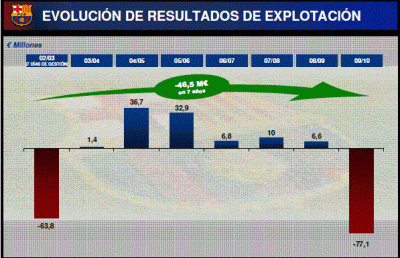 Det var alltså mitt under sommaren som den nyvalde presidenten Sandro Rossel släppte ”bomben”. Istället för €11 miljoner i vinst vilket den avgående presidenten Laporta hade rapporterat om, valde klubbens nya ledning att redovisa en förlust på €77 miljoner.