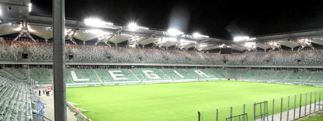 Bilden visar Pepsi Arena, Legia Warszawas nya hemmaplan. Arenan tar lite drygt 30 tusen åskådare och är finansierad av staden Warszawa.