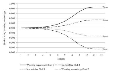 I denna modell är däremot antagandet om att det bara finns två klubbar i en liga som är det som avviker mest från verkligheten. Det är osäkert hur allokeringen av talang kommer att ske med fler deltagande lag än med två. I en liga där en klubb är mycket dominant kan det i stället vara den näst största klubben som gynnas mest (tack vare att den dominerande klubben inte kan vinna så många fler matcher, vilket den näst största kan) och som därmed ökar osäkerheten om mästerskapet.