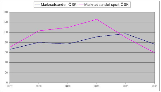 Det är ganska enkelt och konstatera att Örebro inte har lyckats hantera den personalomsättning som man har haft på spelarsidan. Under tillväxtfasen lyckades klubben bygga en konkurrenskraftig trupp med små medel. Trots att resurserna under åren blev större så lyckades man inte uppgradera sin sportsliga sida. Enligt Sixten Boström hade klubben rekryterat cirka 50 spelare sedan lagets anfallare och nyckelspelare Kim Olsen lämnade sommaren 2010. Örebro har med andra ord samlat på sig höga alternativkostnader som realiserades under 2012. I dubbel bemärkelse. Figuren nedanför illustrerar utvecklingen väl.