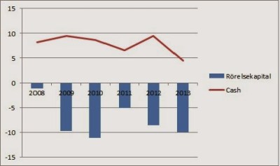 Det vore dock magstarkt att säga att Djurgårdens ekonomi har blivit bra. Precis som inför 2013 går klubben in i säsongen med ett underskott i rörelsekapitalet (omsättningstillgångar inkl kassa minus kortfristiga skulder). Man behöver därmed öka sina rörelseintäkter med ca 8 miljoner kronor under 2014. Givet att ”övriga kostnader” kommer ner på för klubben normala nivåer samt att kostnaderna för spelarkontrakt inte ökar jämfört med under 2013. Först då kan klubben klara sig utan externa kapitaltillskott. Ett problem som kan hindra en sådan förbättring är att bidragsgivarna under flera år har lärt Djurgården att det finns pengar tillgängliga.