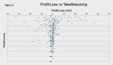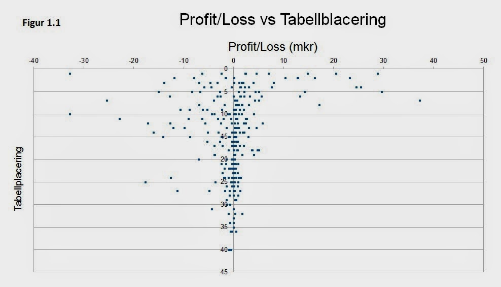 Dock kanske denna figur blottar de klubbar som har haft problem i sin verksamhet under de sista 10 åren. Klubbar med en hög standardavvikelse och som befinner sig på den vänstra sidan om nollstrecket.