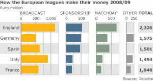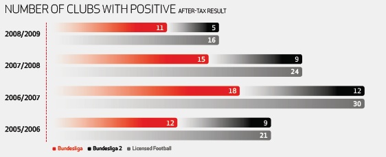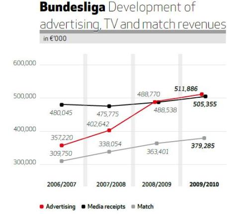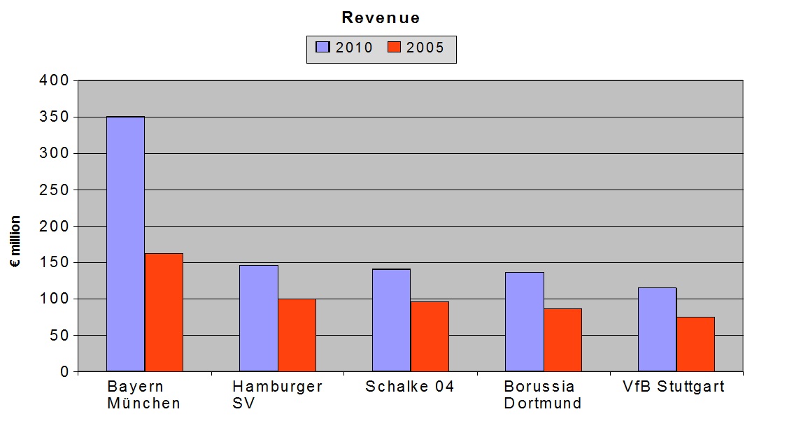 Bundesliga står och knackar på dörren till den absoluta Europatoppen. Marknadsintäkterna håller redan en mycket hög internationell klass. TV rättigheterna har en bit kvar och ”match-day revenues” likaså. TV pengarna är i huvudsak fixerade fram till 2012. Kommer vi att få se en prishöjning på de idag fullsatta tyska arenorna? Fotboll går i slutändan ut på att vinna och hur stort är tålamodet med att ständigt inte kunna nå hela vägen fram i Europacupspelet?