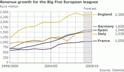Den franska ligan har länge bromsats av regleringar och marknadsmisslyckanden. Även om de franska klubbarna kommer att uppleva något av en renässans när de nya arenorna invigs under de kommande åren så är det tveksamt att ligan kan plocka marknadsandelar vad gäller sändningsrättigheter på tillväxtmarknaderna.