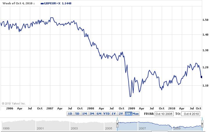 Figur7: utvecklingen GBP/EUR, saxat från YahooFinance