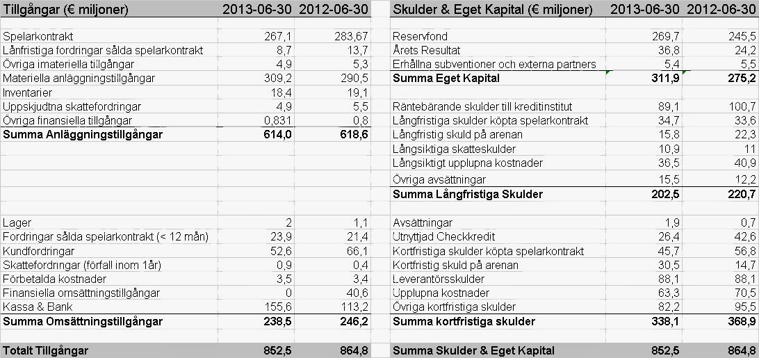 Om man tittar på resultaträkningen i sin helhet så går det att konstatera: AIK letar fortfarande efter balans i resultaträkningen. Bruttoresultatet (gross profit) har blivit större. Trots att man möter intäkter från spel i Europa League under 2012. Klubbens möjligheter att kunna ha högre personalkostnader är med andra ord större än tidigare år. Möjlighet att ha höga personalkostnader i relation till andra konkurrenter är viktigt för att kunna leverera goda sportsliga resultat över tid. Vilket i sig är viktigt för att kunna behålla och öka sina intäkter.